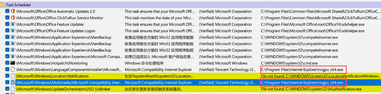 本次“银狐”木马会创建系统计划任务实现持久化驻留,并释放恶意程序文件,若在以下路径中发现相关文件,请予以删除: