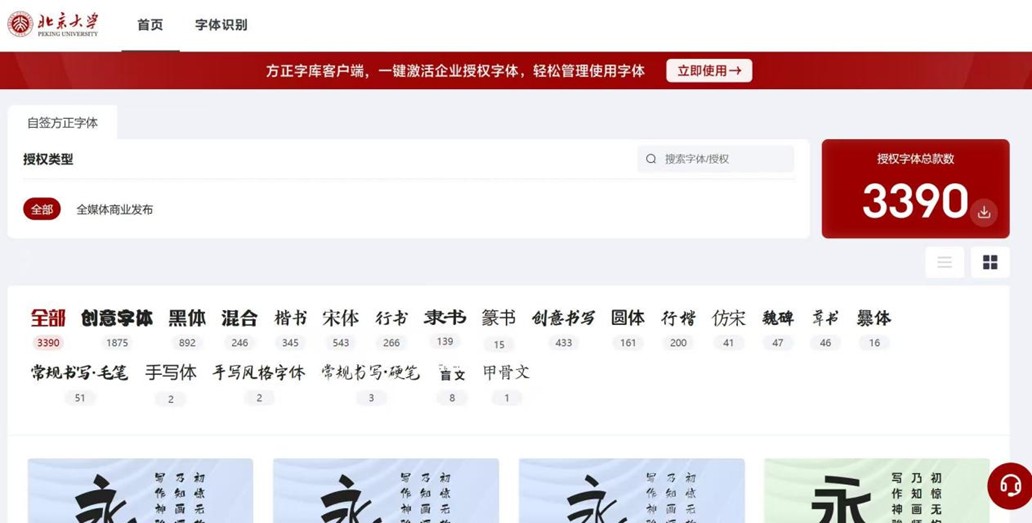 为方便全校师生便捷、规范地使用各类字体,北京大学现正式面向全校师生开放3300余款方正正版字体的下载与使用。