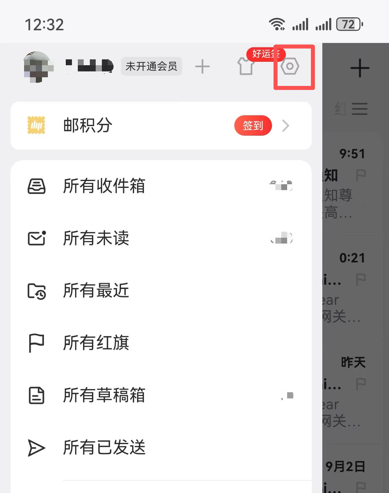 1. 打开网易邮箱大师App,点左上角三个横线的图标”: