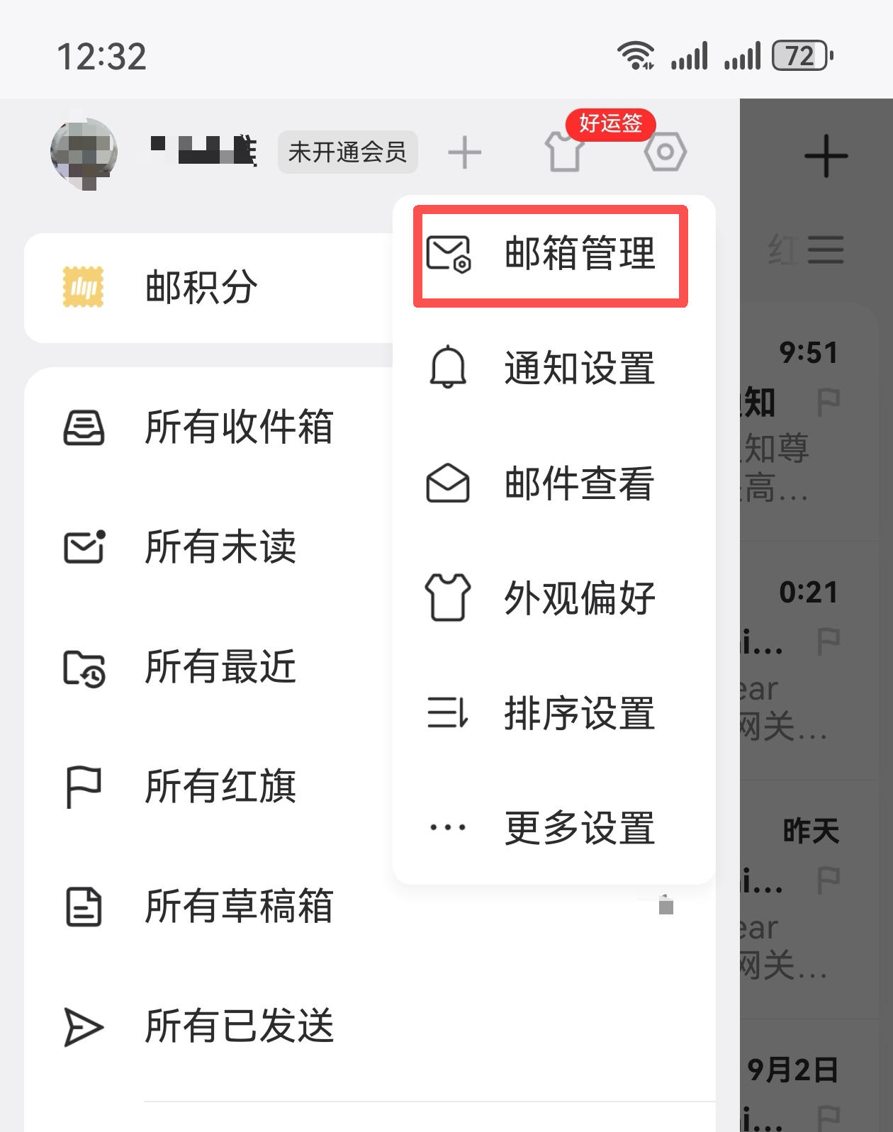 3. 点“邮箱管理”: