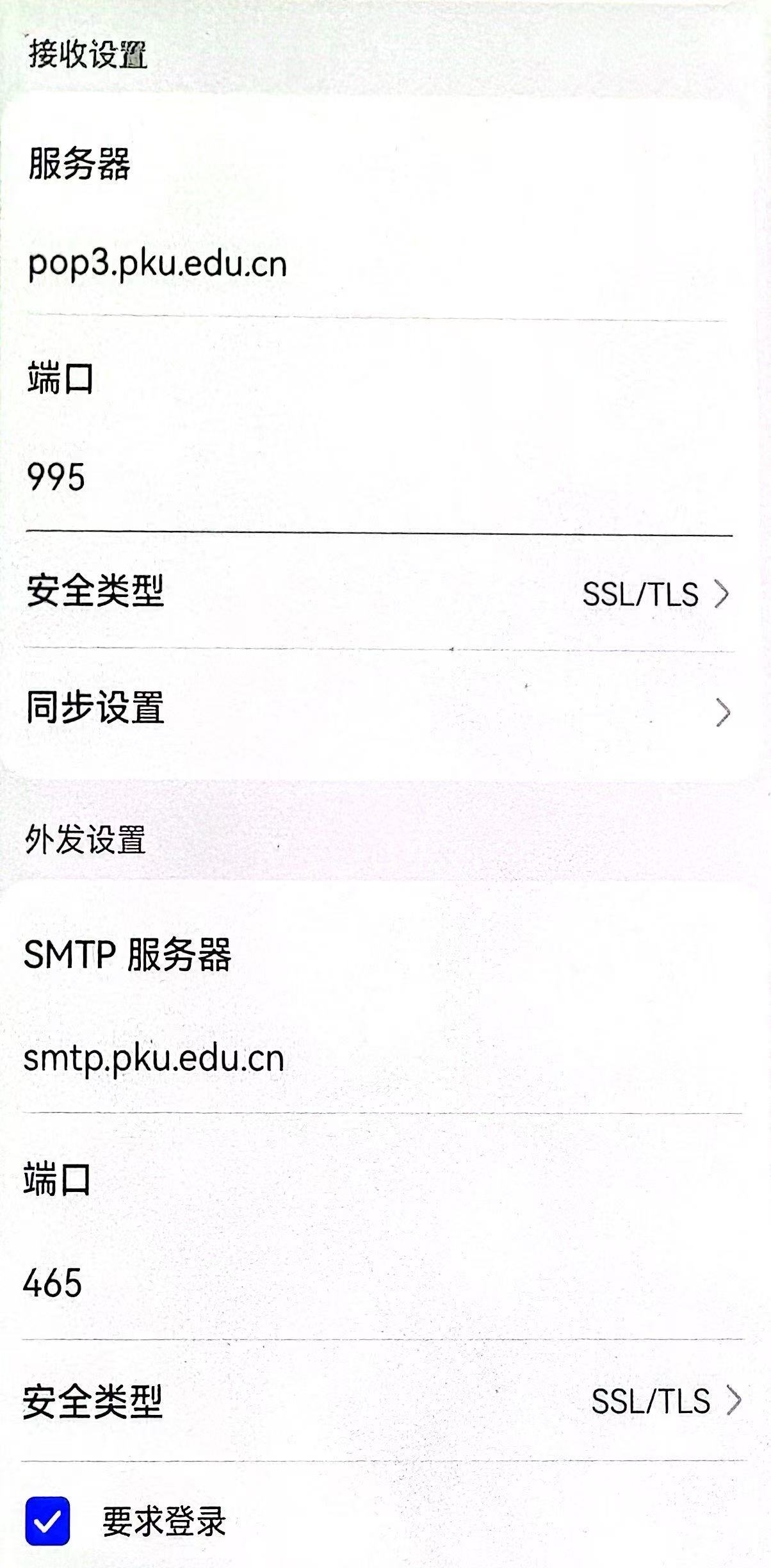 提示:本说明以 test@pku.edu.cn 作为邮箱地址,当按照下面方法设置邮箱时,请将test@pku.edu.cn替换为您的邮箱地址。